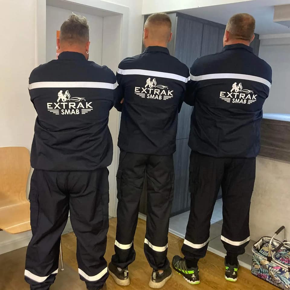 Lors d’une intervention sur feu, nos équipes sont équipées d’extincteurs à poudre ainsi que d’extincteurs eau/additif, complétés par nos équipements de protection individuels spécifiques : vestes de feu, cagoules ignifugées et casques de type pompier.