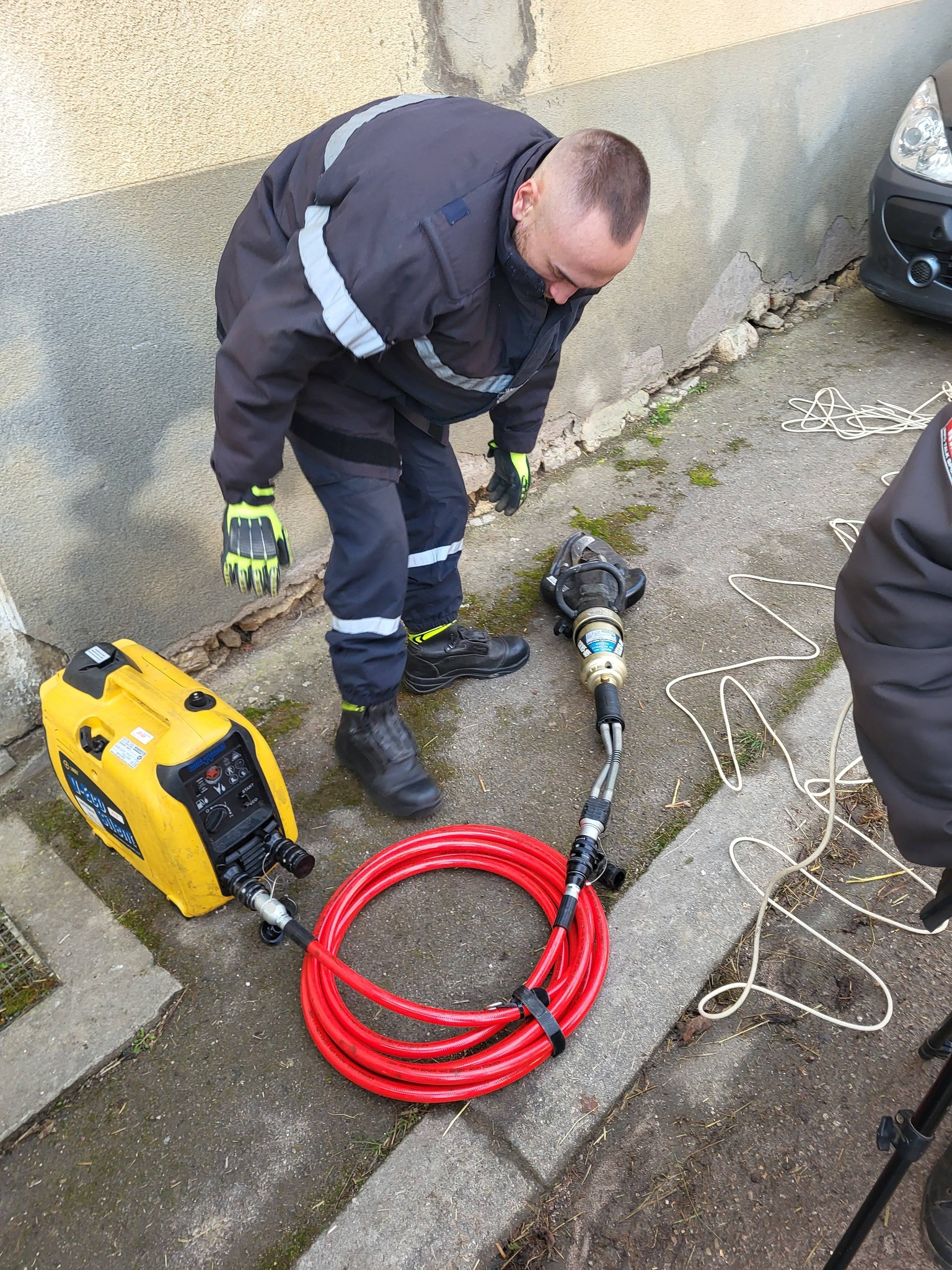 En cas de sortie de route ou d’accident nécessitant une désincarcération, nous disposons d’un ensemble complet d’outils hydrauliques haute pression (cisailles et écarteur 700 bars), de matériel d’extraction tel que l’Attelle Cervico-Thoracique (ACT), ainsi que de divers équipements complémentaires (couvertures de protection, outils manuels, gants anti-coupure, éclairage portatif, etc.).